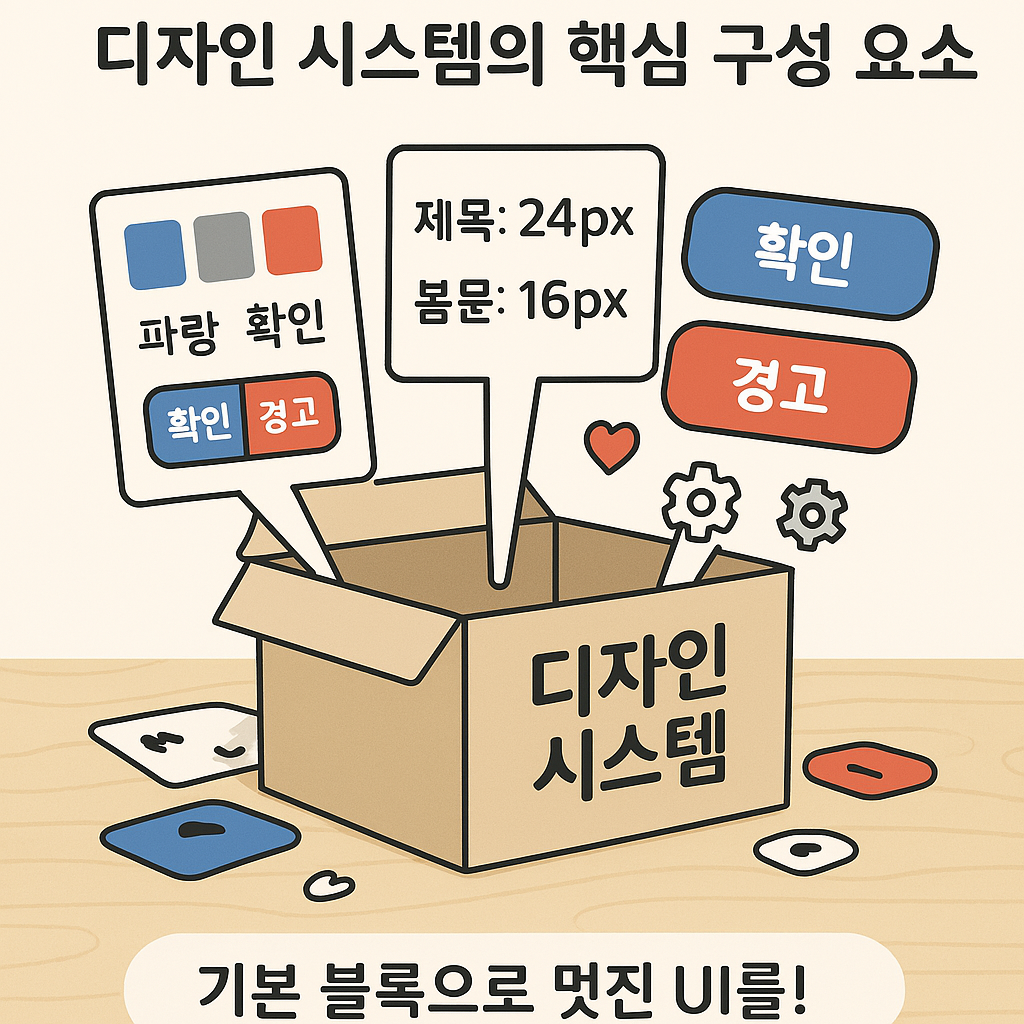 지난번에 디자인 시스템이 왜 필요한지 알아봤으니, 이번엔 그 시스템을 이루는 기본 뼈대가 뭔지 파헤쳐 볼게요. 저는 처음 디자인 시스템을 공부하면서 "이게 대체 뭐로 만들어진 걸까?" 궁금했는데, 하나씩 뜯어보니 생각보다 이해하기 쉬웠어요. 그럼 저와 함께 디자인 시스템의 핵심 구성 요소를 알아볼까요?