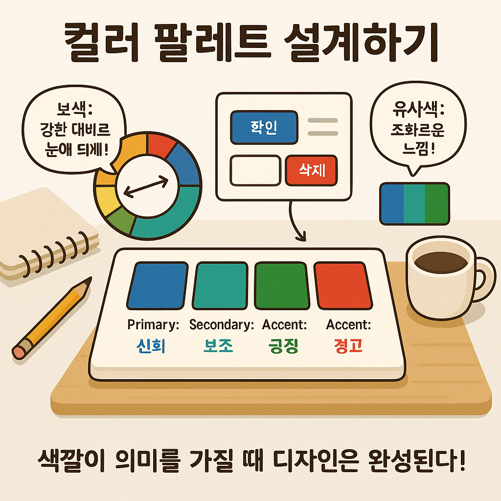 오늘은 디자인 시스템의 실무적인 첫걸음, 바로 컬러 팔레트 설계에 대해 이야기해보려고 해요. 색상은 디자인에서 가장 먼저 눈에 띄는 요소라 정말 중요하죠. 저도 처음 디자인을 배울 때 색깔 때문에 고생한 적이 많아서, 오늘 주제가 더 와닿네요. 그럼 저와 함께 컬러 팔레트를 설계하는 법을 알아볼까요?