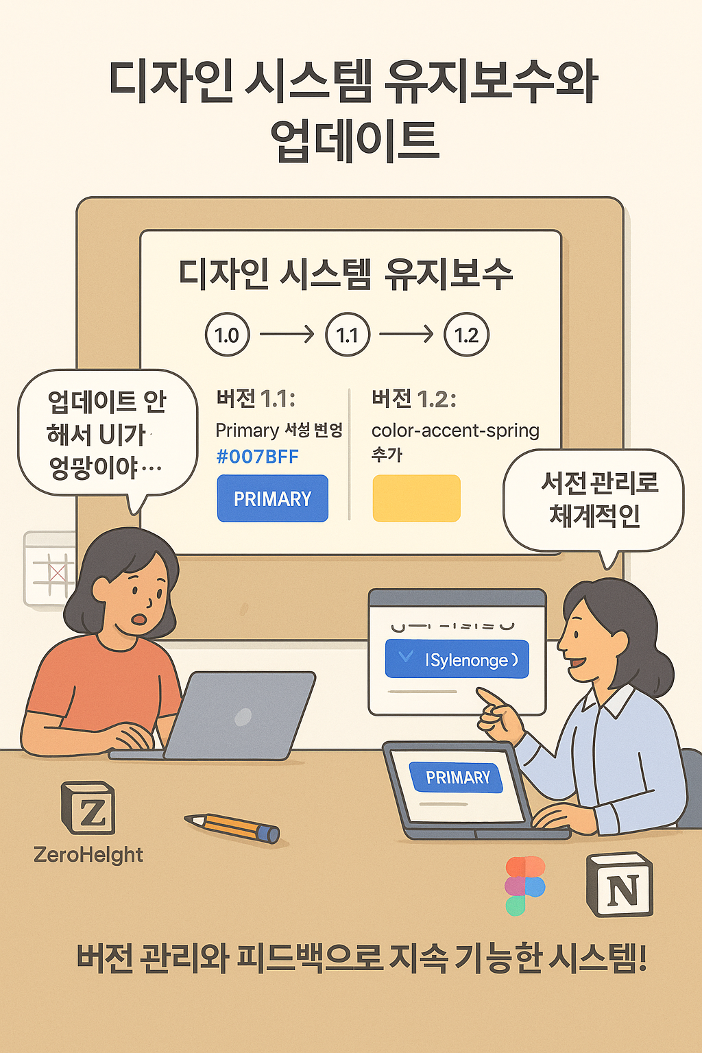 제가 처음 팀 프로젝트에서 디자인 시스템을 만들었을 때의 일이에요. 열심히 버튼, 컬러, 타이포그래피를 정리해서 팀원들과 공유했는데, 프로젝트가 진행되면서 업데이트를 전혀 하지 않았어요. "한 번 만들었으니 이걸로 충분하지!"라는 생각이었죠. 하지만 문제가 생겼어요. 클라이언트가 "브랜드 컬러를 좀 더 밝게 바꿀 수 있나요?" 하고 요청했는데, 디자인 시스템에 새 컬러를 추가하지 않고, 각자 알아서 색상을 바꿔서 작업했어요. 그러다 보니 팀원마다 다른 색상을 사용해서 UI가 통일되지 않았고, 결국 클라이언트가 "이 UI는 왜 이렇게 어수선해요?" 하고 피드백을 주더라고요. 그때 정말 당황했어요. 업데이트를 하지 않으니 디자인 시스템이 제 역할을 못 하고, 팀원 간 소통도 어려워졌죠. 그 이후로 디자인 시스템은 정기적으로 유지보수와 업데이트를 해야 한다는 걸 뼈저리게 느꼈어요. 여러분도 업데이트를 잊어서 낭패 본 적 있나요? 오늘은 그 문제를 해결할 수 있는 방법을 함께 알아볼게요!